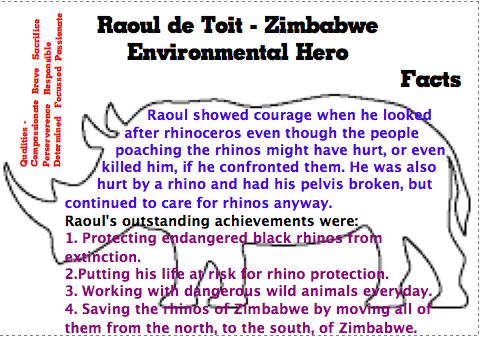 This week we have been learning about two amazing environmental heroes from Africa who dedicate their lives to caring for the native gorillas and rhinos of Zimbabwe & the Democratic Republic of Congo.